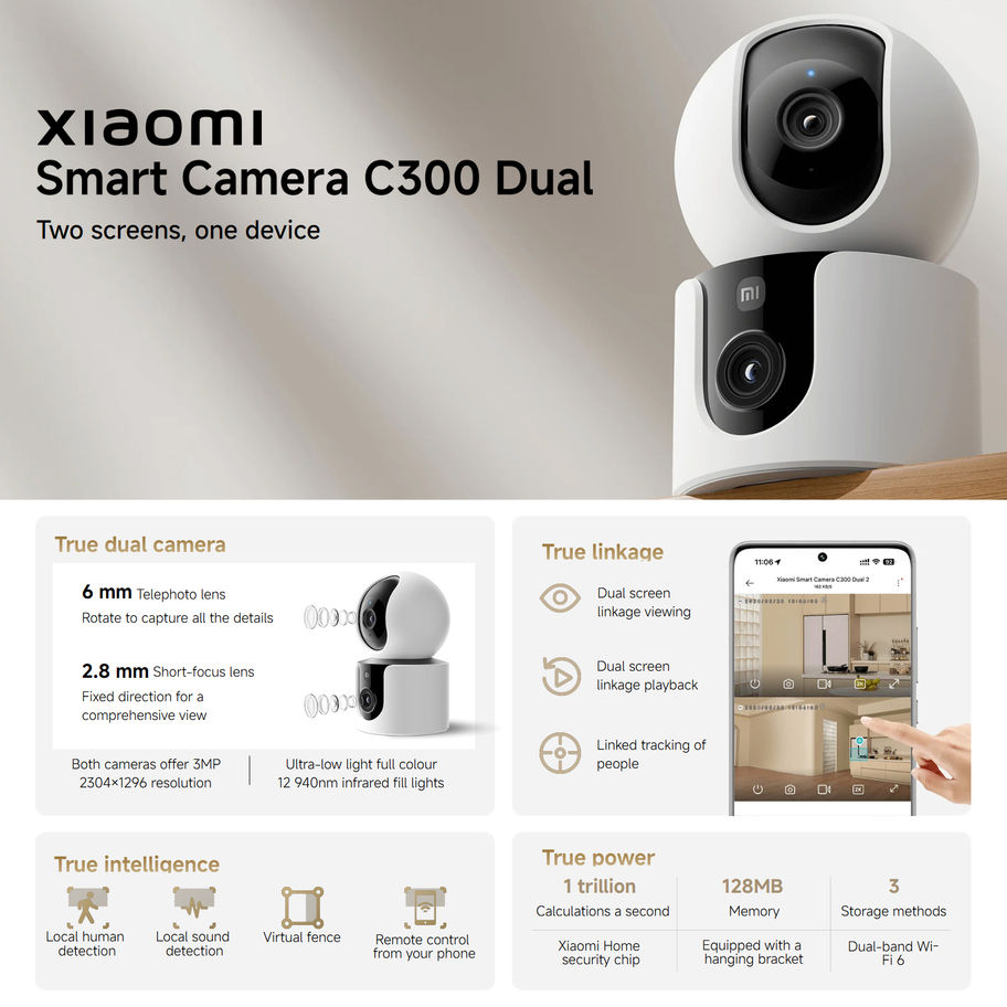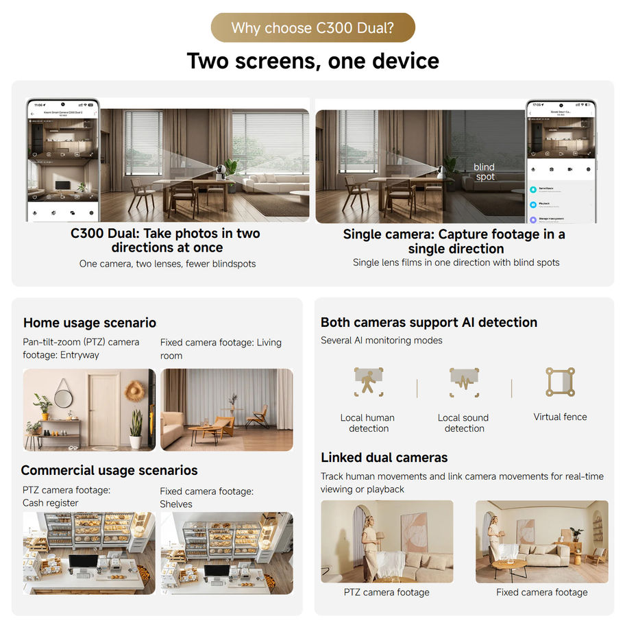 Inteligentna kamera Xiaomi C300 Dual 3MP Ultra-HD z podwójnym obiektywem, obsług